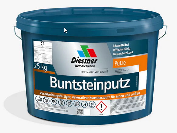 erarbeitungsfertiger Kunstharzputz in Naturstein-Granulatoptik.