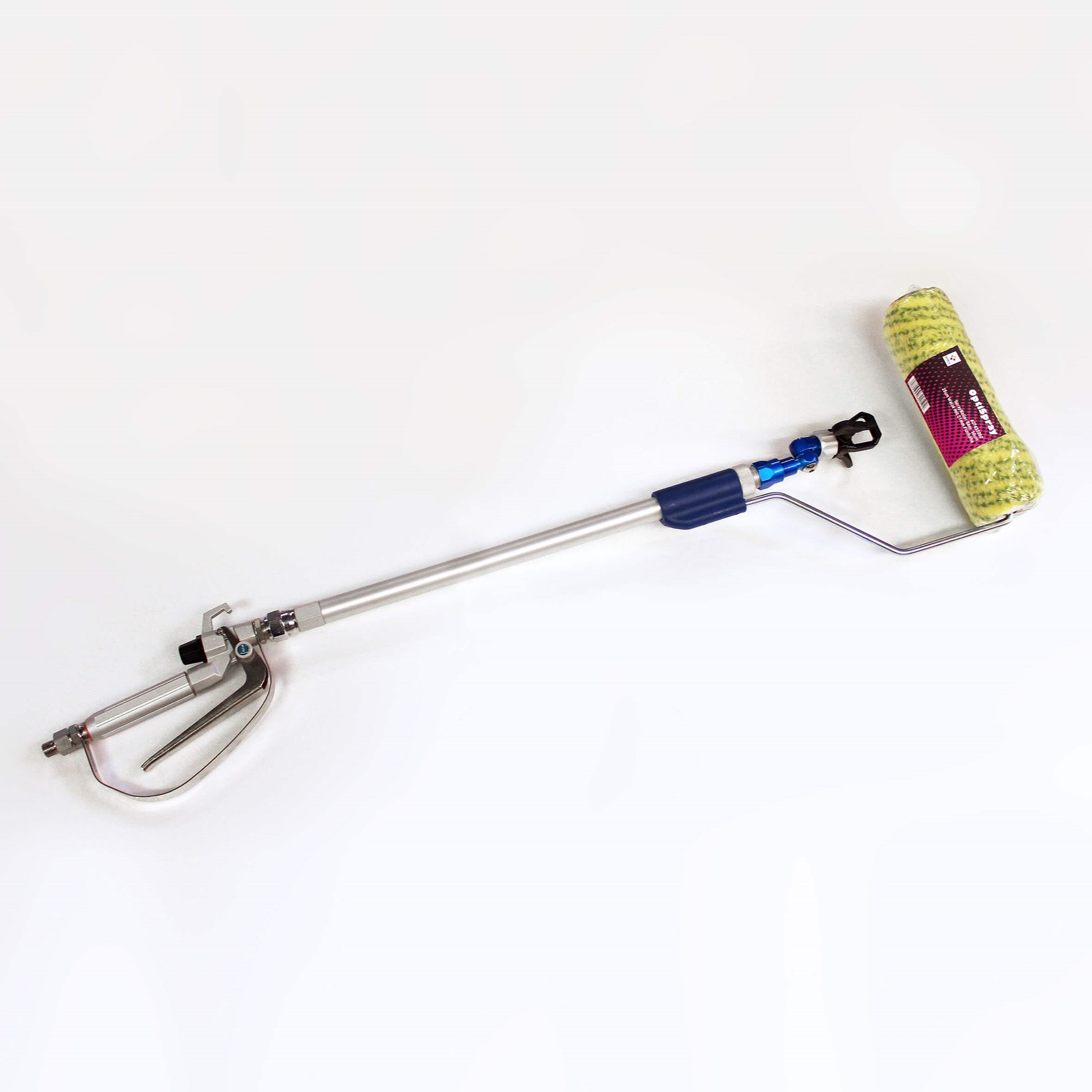 Der SprayRoller besteht aus deinem Bügel mit Walze, einer Inline-Pistole und Düse